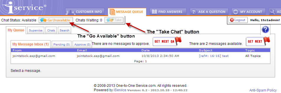 Since customer's expect a rapid response when requesting live help, iService tracks the status of all agents and their availability for chat in real-time. When a chat agent logs into iService, they are presented with a Go Available \ Go Unavailable button.
