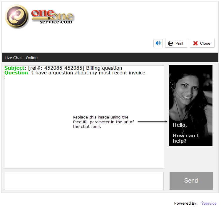 Print Button - The customer can click the Print button to send the current contents of the chat dialogue to their printer.