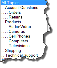 The topics displayed are dependent upon the website on which the form is displayed, and the access rights of the user viewing the page. The topics displayed with this command are the same as the user would see on the FindAnswers.aspx page (the standard iService Find Answers tab) on the same website.