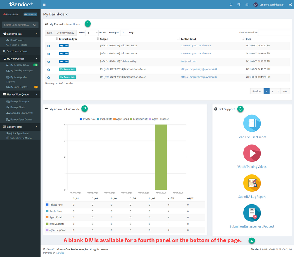 These types of configurations are made within the Websites settings page. The full user interface can be customized by selecting alternate forms in the Site Forms panel. For example, you can replace the default page for agents with a custom form that includes any content desired.