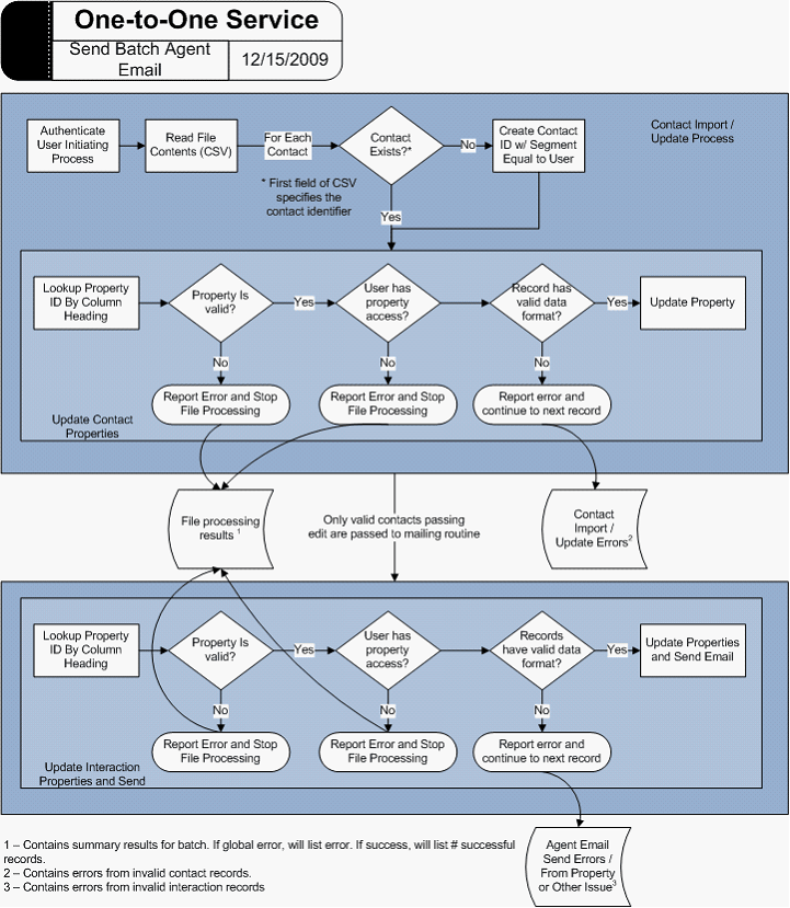 The first routine within the utility ensures the contact record exists and updates the contact properties that are included within the input file. This routine validates all of the contact properties included within the input file and logs error for any records that cannot be updated. The second routine builds the agent email (or other type of interaction) and validates all of the required interaction properties. If the input file does not contain all of the required fields for the specified type of interaction (see the Input File Requirements section below), the second portion of the routine is skipped and the operation is limited to contact import and update.